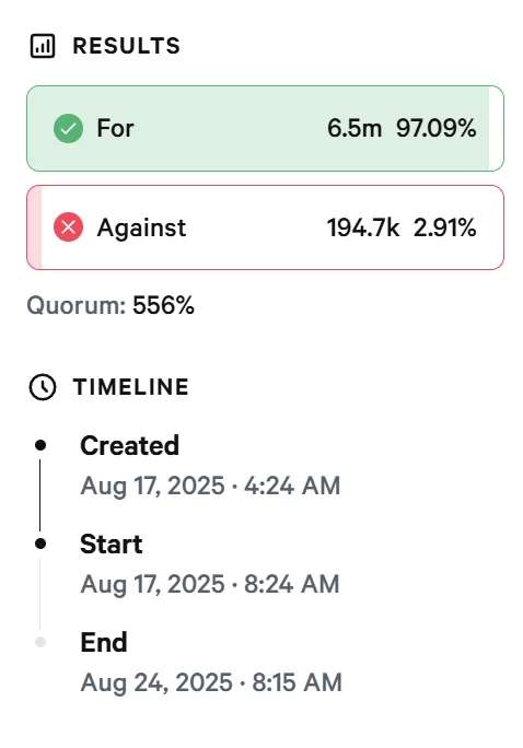 LayerZero基金会针对收购Stargate的提案启动投票,截至8月18日支持率达97.09%,投票进程将于8月24日截止。